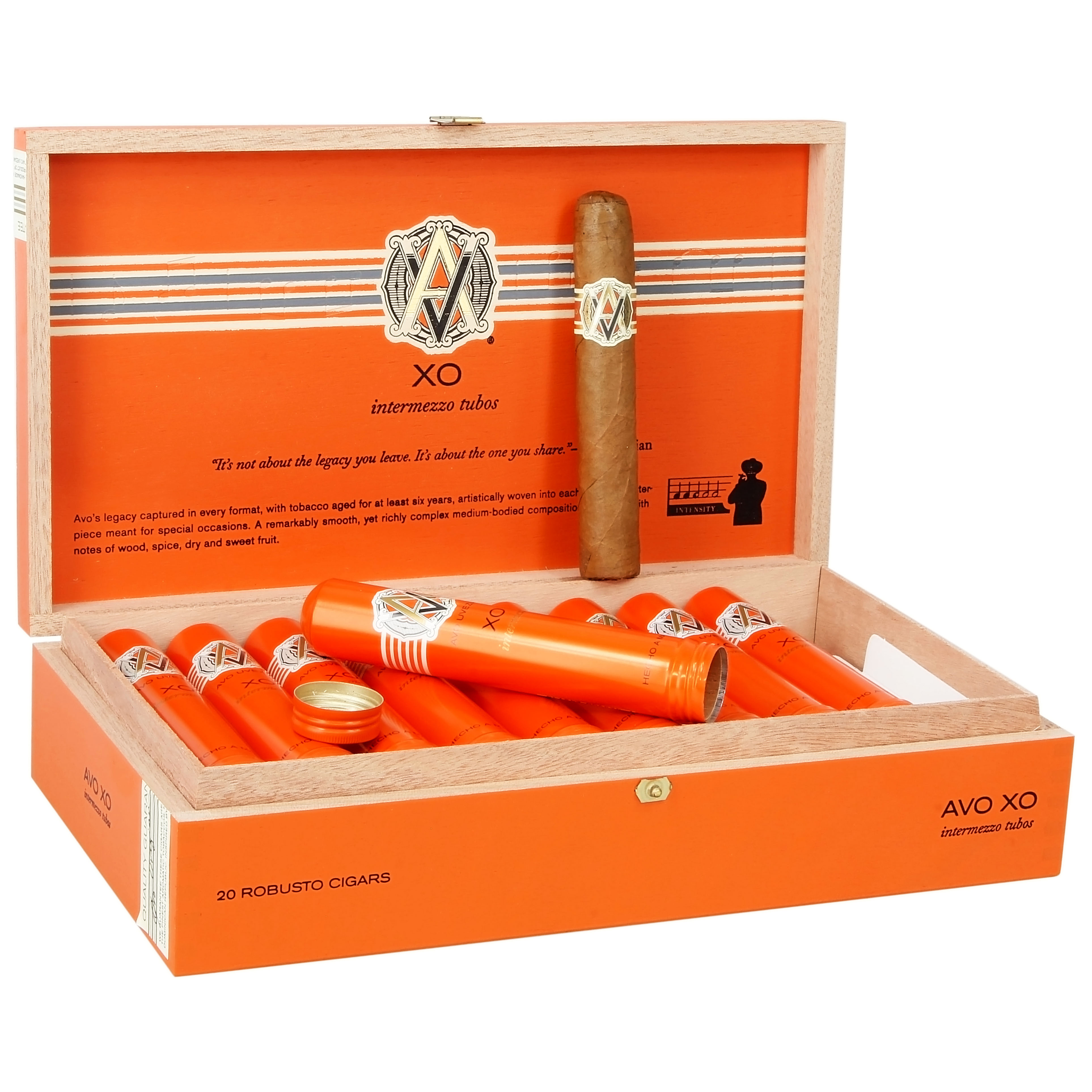 THE AVO XO IS A REFINED, ULTRA-SMOOTH CIGAR CRAFTED WITH AGED DOMINICAN TOBACCOS. IT OFFERS A SOPHISTICATED AND MELLOW SMOKING EXPERIENCE, MAKING IT A STANDOUT IN THE AVO LINEUP. KNOWN FOR ITS ELEGANCE, BALANCE, AND COMPLEXITY, THE XO SERIES IS IDEAL FOR THOSE WHO ENJOY A MILDER CIGAR WITH DEPTH.