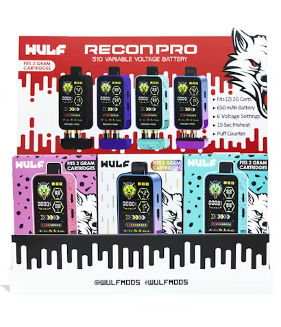 Let your customers become their very own flavor creator connoisseurs by stocking up on the Wulf Mods Recon 4G Dual Cartridge Vaporizer 9pk! Introduce them to the Recon 4G’s mind blowing ability to rip two 2 gram cartridges… at the same time!